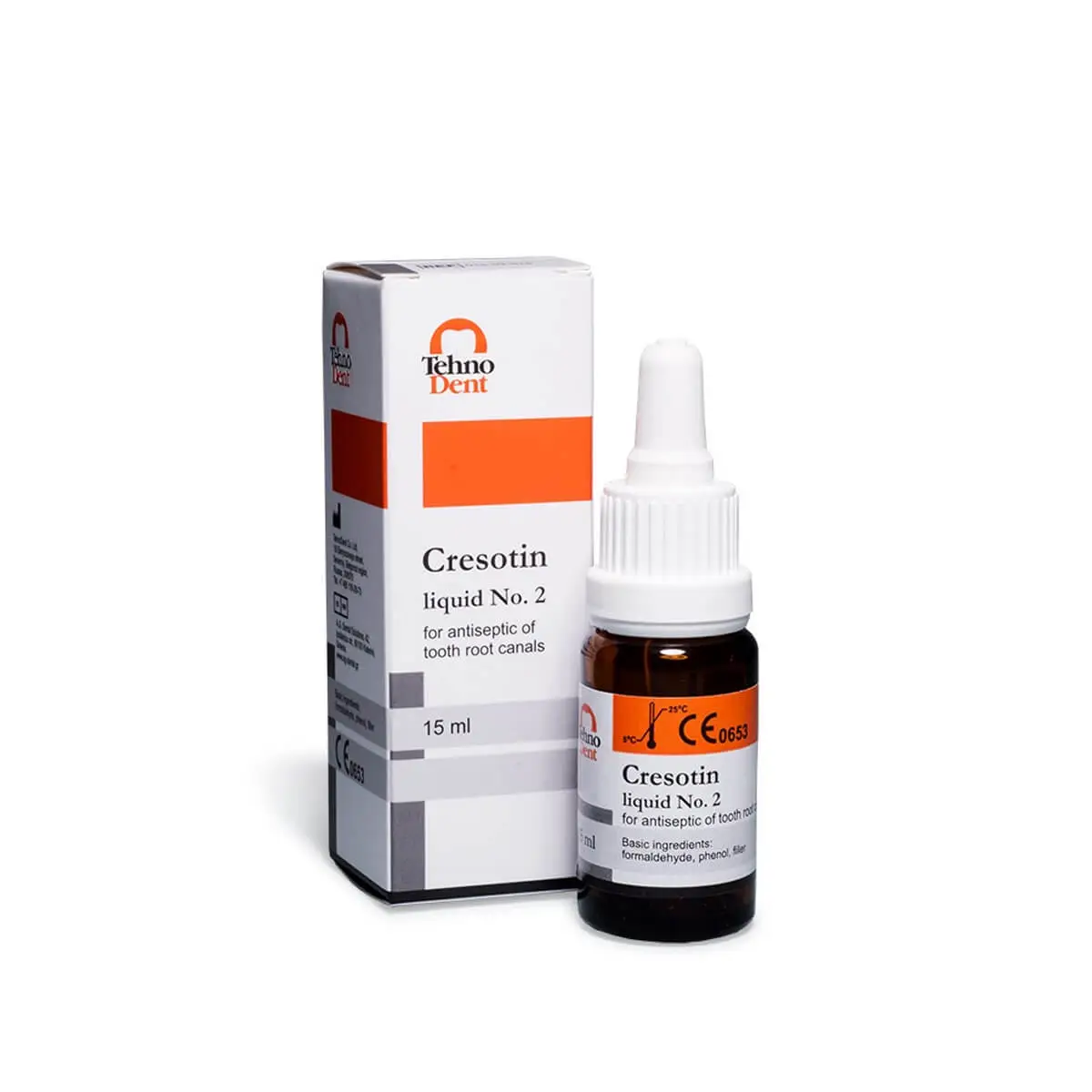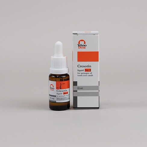 - Liquid for antiseptic treatment of root canalsContains phenol, formic aldehyde (min. 30 %)Phenol and formaldehyde are antiseptics that destroy the proteins of microorganisms, which provides an antiseptic effect, deep mummification and sterilization of root canals.